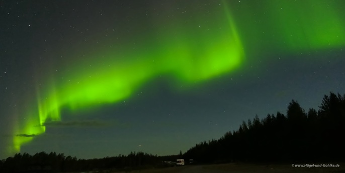 Polarlicht am schwedischen Fluss Piteälv in der Nähe des arktischen Polarkreises, ein paar Minuten später.